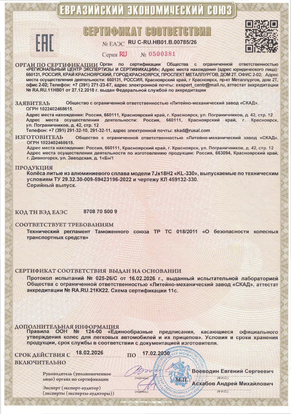 Приобретайте диски SKAD Original KL-330 (18_Coolray) 7.000xR18 5x114.3 DIA54.1 ET50 напрямую от производителя из Сибири. Все представленные в ассортименте диски сертифицированы.