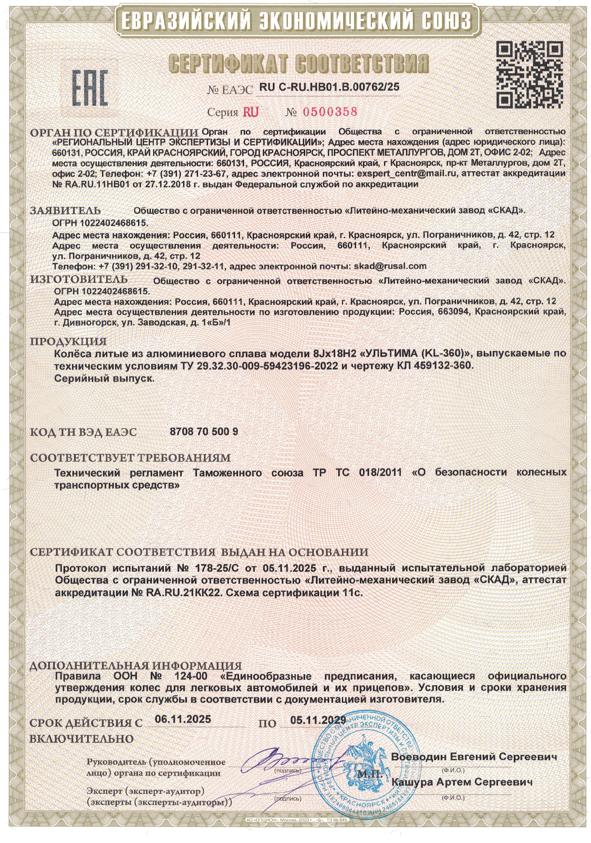 Приобретайте диски SKAD УЛЬТИМА 8.000xR18 5x112 DIA66.6 ET35 напрямую от производителя из Сибири. Все представленные в ассортименте диски сертифицированы.